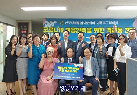 민주평화통일자문회의 서울 영등포구협의회(회장 반풍록)는 8월 10일 오후 2시 코로나19 대응 인력을 위한 격려품을 영등포구(구청장 채현일)에 전달했다.