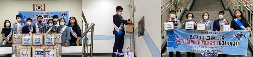 위원 10명, 가정 일일이 찾아가 비대면으로 전달 영등포구 양평2동 청소년지도협의회(회장 이공엽) 위원 10명은 12일 비가 내리는 궂은 날씨에도 불구하고 저소득층 청소년 가정에 코로나19 예방을 위해 방역 키트를 전달했다.