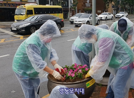 16일 이른 아침 신길7동 새마을지도협의회, 새마을부녀회 회원, 신길7동 통장, 그리고 동관계자 등 40여 명은 신길7동 도로변에 있는 메마른 화분에 가을맞이 꽃을 심었다. 이날 심은 꽃은 3종으로 영등포구청이 지원했다.