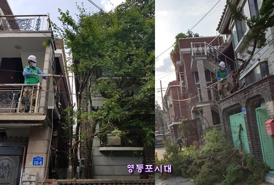 신길4동 새마을협의회는 15일 영등포구 도신로48길(신길4동)에 있는 나무를 깔끔하게 단장하고 주변 방역 소독 봉사까지 펼쳤다. 이날 진행한 나무 단장은 나무가 주택을 침범하고 주위 환경을 해친다는 주민들의 민원에 의해 이루어졌다. 봉사활동을 펼친 신길4동 새마을협의회 강영복 총무와 회원 일동은 “민원도 해결하고 코로나19 감염 예방을 위해 골목골목 방역 활동까지 펼쳐 일거양득의 봉사활동을 벌인 것 같아 보람을 느꼈다”고 전했다.