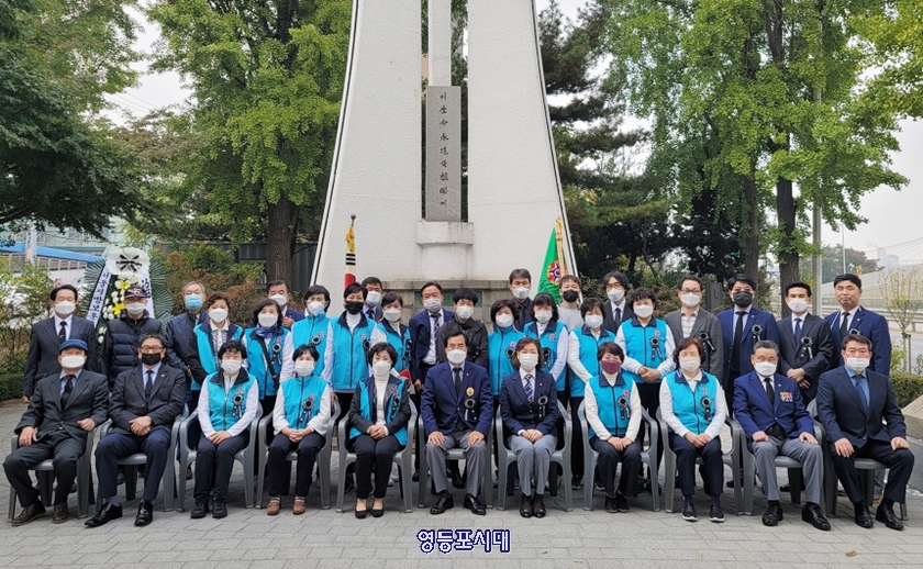 코로나감염 예방 위해 50여 명만 참석 영등포구재향군인회(회장 황태연)는 10월 22일 신길역 뒤에 자리한 위령탑에서 반공 순국 용사 위령제를 거행했다.
