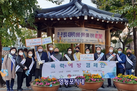 신길6동 주민자치위원회와 꿈터상담소, 신길6동 주민센터는 10월 30일 오후 공동주관으로 성희롱, 성매매, 성폭력, 가정폭력 등 4대 폭력 예방 캠페인 진행했다.