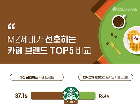 대학내일20대연구소가 올해 상반기에 이어, 두 번째 발표한 MZ세대 식생활 데이터 보고서에 따르면 이같이 나타났다. MZ세대와 떼려야 뗄 수 없는 카페 이용 시 가장 선호하는 브랜드는 ‘스타벅스’, 디저트가 가장 맛있다고 생각하는 브랜드는 ‘투썸플레이스’ 순으로 나타났다. MZ세대가 선호하는 카페 브랜드는 ‘스타벅스(37.1%)’가 가장 높고, 이어서 ‘이디야커피(13.3%)’, ‘투썸플레이스(11.4%)’, ‘빽다방(8.4%)’, ‘메가커피(7.4%)’가 상위 5개 브랜드 안에 들었다. 디저트가 가장 맛있다고 생각하는 브랜드는 ‘투썸플레이스(48.2%)’, ‘스타벅스(18.4%)’, ‘빽다방(4.5%)’, ‘이디야커피(4.1%)’, ‘엔제리너스(3.4%)’ 순으로 나타나, 투썸플레이스가 월등히 높았다. 카페를 10번 방문한다고 가정했을 때 그 중 선호하는 카페에 몇 번이나 방문하는지 물어 선호도 상위 5개 브랜드의 방문 충성도를 비교해 본 결과, 스타벅스 최선호자는 카페 10번 중 평균 5.4번을 스타벅스에 방문한다고 응답해 가장 충성도가 높았다. 이어서 메가커피는 4.9번, 이디야커피는 4.4번, 빽다방은 4.3번 방문하는 것으로 나타났고, 투썸플레이스는 평균 3.7번으로 5개 브랜드 중 충성도가 가장 낮았다. 스타벅스 최선호자는 스타벅스를 가장 좋아하는 이유로 ‘커피·음료의 맛(44.9%)’을 가장 많이 꼽았다. 이어서 ‘방문의 편리함(36.4%)’, ‘카페 브랜드 인지도(28.2%)’가 중요한 것으로 나타났다. 한편 투썸플레이스를 선호하는 가장 큰 요인은 ‘디저트의 맛(37.2%)’이고 다음이 ‘커피·음료의 맛(36.2%)’으로, 디저트 이미지가 가장 강력한 브랜드임을 확인할 수 있었다. 저가 브랜드인 이디야커피, 빽다방의 선호 이유는 ‘가격대’가 각각 53.2%, 69.6%로 가장 높게 나타났다. 한편 같은 저가 브랜드인 메가커피는 ‘커피·음료의 맛(59.0%)’ 때문에 선호한다는 응답이 가장 높았고, ‘가격대(57.4%)’는 그다음이었다. 최근 코로나19 확진자가 다시 늘어나면서 24일부터 수도권은 사회적 거리두기가 2단계로 격상됐다. 2단계가 되면서 카페는 포장과 배달만 허용되고, 매장 이용은 할 수 없다. 9월 사회적 거리두기 2.5단계 시행 당시 수도권 MZ세대는 카페를 어떻게 이용했을까. 매장 이용이 어려운 해당 기간, ‘음료나 디저트를 테이크아웃’했다는 응답이 49.7%로 가장 높게 나타났다. 카페가 아닌 ‘편의점이나 마트에서 판매하는 음료·디저트 이용’은 20.4%, ‘개인 카페 등 매장 이용이 가능한 카페 방문’, ‘배달 주문을 통해 카페 이용’ 경험은 각각 15.2%, 15.0%로 뒤를 이었다. 한편 어떤 방식으로도 카페를 이용하지 않고, 음료도 마시지 않았다고 응답한 비율은 27.7%로 전체 응답의 3분의 1을 차지했다. 동기간 비수도권은 사회적 거리두기 단계가 강화되진 않았지만, 수도권과 마찬가지로 카페 매장 이용을 자제하는 모습을 보였다. ‘테이크아웃’ 53.9%, ‘편의점·마트 이용’ 18.4%, ‘배달 주문’ 17.4%로 수도권과 큰 차이를 보이지 않았고, ‘카페를 이용하지 않고 음료도 마시지 않았다’는 응답은 20.5%로 수도권에 비해 다소 적었다. ‘평소처럼 매장 이용’했다는 응답은 13.7%로 가장 낮은 응답률을 보였다. 이번 조사는 3개월에 한 번 이상 카페에 방문하는 전국 만 15세 이상 39세 이하 남녀 900명 표본을 대상으로 2020년 9월 10일부터 16일까지 7일간 구조화된 설문지를 활용한 온라인 패널 조사 방법으로 실시했으며 데이터스프링이 운영하는 한국 패널 서비스 ‘패널나우’를 이용했다. 카페 외에도 식사, 식료품 구매, 음식 콘텐츠 등 식생활에 관련된 상세 조사 결과는 대학내일20대연구소 홈페이지의 연구 자료 내 ‘[데이터플러스]소비-식생활(10월)’에서 확인할 수 있다.