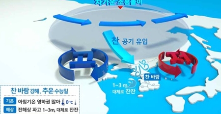 기상청은 12월 3일(수능 당일)부터 몽골 부근에서 또다시 대륙고기압이 확장해 오면서 우리나라에 영향을 주는 찬 공기의 강도가 강해 추울 것으로 전망했다. 기상청(청장 박광석)이 2021학년도 대학수학능력시험(아래 수능) 기간 수험생 건강관리와 시험장 이동 지원을 위해 11월 30일 기상정보를 발표했다. 기상청 발표에 따르면 이번 수능 기간(12월 1일(화)~4일(금)은 북서쪽에서 확장하는 찬 대륙고기압과 우리나라 5km 상공을 지나가는 찬 공기의 강도와 이동속도에 따라 추위 정도가 정해질 것으로 보인다. 기상청은 “12월 1일~2일(예비소집일)은 중국 북부에서 다가오는 대륙고기압에 의해 찬 공기가 우리나라에 영향을 주겠으나, 고기압이 점차 약해지면서 산둥반도로 이동하기 때문에 찬 공기의 강도는 강하지 않다”고 분석했다. 그러나 3일(수능 당일)부터 찬 공기의 강도가 강해지고 4일(금)은 5km 상공을 통과하는 –20℃ 안팎의 찬 공기가 우리나라 북동쪽에 저기압을 발달시켜 우리나라 부근의 대륙고기압과 기압 차가 커지기 때문에 북풍이 강해지고, 찬 공기의 유입도 더욱 활발해질 것으로 전망했다.