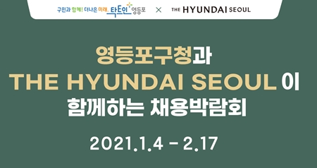 영등포구(구청장 채현일)가 ‘THE HYUNDAI SEOUL’과 함께하는 온라인 채용박람회를 1월 4일부터 2월 17일까지 45일간 개최한다. 이번 채용박람회는 오는 2월 말 여의도에 개장 예정인 서울 최대 규모의 백화점, ‘THE HYUNDAI SEOUL’에 입점할 업체들의 인력 채용을 위한 행사다. 코로나19 확산 방지를 위해 전면 온라인 방식으로 추진된다. 온라인 채용박람회 참가 방법은 포털사이트에서 ‘영등포구-현대백화점 채용박람회’를 검색하거나, 웹 주소(www.jobkorea.co.kr/Theme/ydp1119)에 직접 접속하면 된다. 이번 박람회에서는 160여 곳의 업체에서 채용하는 650여 명 규모의 일자리가 제공되며, 자세한 채용 공고는 홈페이지 채용관을 통해 확인할 수 있다. 온라인 입사 지원 후 업체별로 1차 서류심사와 2차 개별면접을 통해 선발이 완료된다. 영등포구는 채용관 외에도 부대 행사 관을 마련해 ▲AI면접 모의고사 ▲인적성 검사 ▲취업 동영상 강의 ▲우수 자소서 제공 등 다양한 부대행사를 진행함으로써 취업에 실질적 도움을 줄 예정이다. 특히 많은 구민이 이번 박람회를 통해 취업에 성공할 수 있도록 ‘서비스 마케팅 실무자 과정’ 교육 프로그램을 선제적으로 운영하여 교육부터 입사 지원, 채용 연계까지 원스톱으로 지원한다는 방침이다. 채용박람회 운영에 대한 자세한 문의는 영등포구 일자리플러스센터(2670-1119), 또는 일자리경제과(2670-4103)로 문의하면 된다.