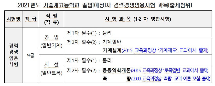 한국사 과목은 한국사능력검정시험으로 대체 2021년 3월 2021년도 지방공무원 9급 신규임용시험공고하고 원서접수는 4월, 필기시험은 6월 5일 치러질 예정이다.
