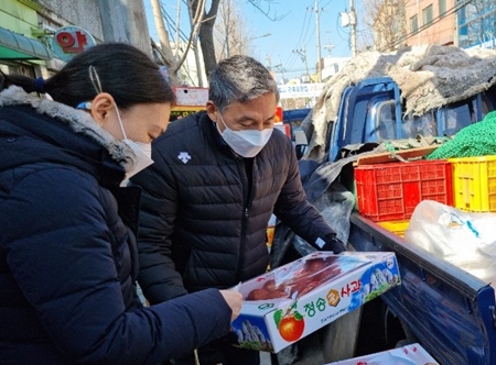 서울지방병무청이 설 명절을 맞이해 전통시장 활성화를 위한 장보기에 나섰다.