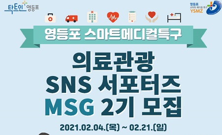 영등포구(구청장 채현일)가 영등포의 우수한 의료서비스와 다양한 관광 정보를 국내‧외에 홍보할 ‘2021 영등포 스마트메디컬특구 SNS서 포터즈’를 모집한다고 2월 4일 오전 밝혔다. 2020년에 이어 제2기 SNS 서포터즈’다.