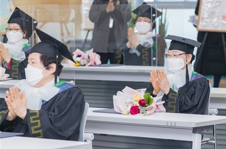 2월 3일 영등포구청(구청장 채현일) 별관에서 특별한 졸업식이 열렸다. 바로 ‘2020학년도 제1회 영등포 늘푸름학교 중학 과정 졸업식’이 바로 그것이다. 올해 개최된 졸업식은 졸업생들의 추억이 담긴 영상 상영을 시작으로, 채현일 영등포구청장의 졸업장 수여, 축사의 순으로 간소하게 치러졌다. 이날 ‘2020학년도 제1회 영등포 늘푸름학교 중학 과정 졸업식’에 참석한 졸업생 12명은 2013년 첫 개설된 한글기초반에서 가나다를 배우며 9년간 배움의 길을 함께 걸어온 늘푸름학교 개교공신들이다. 2020년 3월 25명이 함께 시작했으나 12명의 어르신만 졸업해 아쉬움을 남겼다. 졸업생들은 지난 3년간, 국어, 영어, 수학, 사회, 과학 등의 중학 문해 교육과정을 수학했다. 영등포구 직영의 학력인정 프로그램인 ‘영등포 늘푸름학교’는 배움의 때를 놓친 어르신들이 별도의 검정고시를 거치지 않고도 일정 교육과정을 이수하면 졸업 학력 인증서를 받을 수 있는 성인 문해 교육 프로그램이다. 영등포구는 학생들에게 넓은 안목과 잊지 못할 추억을 선사하기 위하여 교과과정과 연계한 현장 체험학습, 봄‧가을 소풍, 수학여행, 졸업여행을 실시하고, 학생회를 조직해 운영했다. 하지만, 지난해에는 코로나19의 유행으로 계획됐던 활동들이 중단‧축소 운영됐다. 1회 중등과정을 졸업한 이두순 어르신은 “늘푸름학교에 다니는 동안 평생 못 배운 상처를 위로받으며, 가슴 벅찬 행복을 느꼈다”며, “애정 어린 시선으로 열정을 다해 가르쳐주신 선생님들과 함께 달려와 준 동료 만학도들, 배움의 길을 걸을 수 있게 도와준 영등포구에 진심으로 감사드린다”는 소감을 전했다.