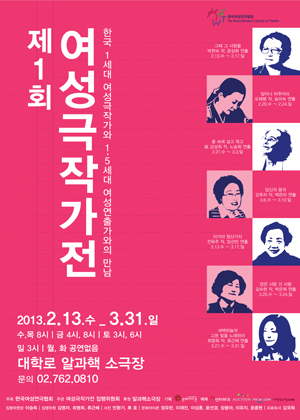 우리나라 근대극이 현대극으로 이행되던 1960년대 이후 활발한 극작 활동을 보여준 故강성희, 박현숙, 전옥주, 김숙현, 오혜령, 강추자, 최명희 작가의 작품을 만날 수 있는 ‘제1회 여성극작가전’.
