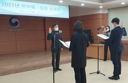 서울지방병무청이 이날 개최한 온라인 청렴 선서식은 공정하고 신뢰받는 병무청, 청렴 실천 결의를 통해 직원들의 청렴 의식을 높이고 공직자로서의 엄격한 도덕성 확립을 위해 개최했다. 선서식 행사는 코로나19 확산 방지를 위해 최소한의 인원만 참석했으며, 행사 미참석 직원들은 온라인을 통해 실시간 라이브 방송으로 선서식을 시청했다. 임재하 서울지방병무청장은 “공직자의 기본은 청렴”이라며 “이번 청렴 다짐을 통해 올해에도 국민으로부터 더욱 신뢰받고 사랑받는 병무청이 되도록 전 직원이 함께 노력하겠다”고 밝혔다.