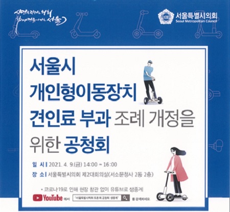 정차·주차위반 차량 견인료의 적정성을 검토하고 개인형 이동 장치 이용 정착과 안전사고 예방을 위한 공청회가 개최된다.