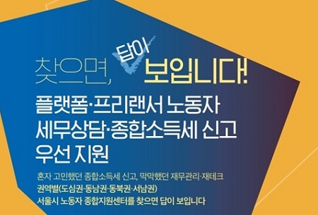 서울시가 코로나19로 인해 지속해서 늘고 있는 플랫폼·프리랜서 노동자들의 이런 고민을 해결해 주기 위해 종합소득세 신고 방법을 비롯한 각종 세무 상담을 시작한다고 19일 오전 밝혔다. 서남권인 영등포·강서·양천·구로·금천 관악·동작은 매주 목/금요일 상담을 진행한다. 플랫폼노동자와 프리랜서는 개인사업자 또는 자유 직업소득자로 정의돼 매년 5월 종합소득세를 신고·납부해야한다. 하지만 세금 신고가 처음이거나 방법을 몰라 신고를 아예 하지 않아 과태료를 물거나 환급금 발생 사실을 몰라 기본적인 혜택조차 누리지 못하는 경우가 발생하고 있는 것이 현실이다. 서울시가 세금 신고에 어려움을 겪고 있는 플랫폼·프리랜서노동자를 위해 세무사가 노동자에게 직접 종합소득세 신고 대상 여부, 신고에 필요한 서류, 신고 방법과 세금 납부 요령, 절세방법, 공제기준 등을 자세하게 알려준다. 상담을 원하는 플랫폼·프리랜서노동자는 가까운 서울시 노동자종합지원센터 4곳을 방문하거나 전화하면 상담을 받을 수 있다. 상담은 4월 19일(월)~5월 28일(금)까지(5월 5·19일도 상담 진행), 센터 당 주 1~2회 정해진 요일(오전 10시~오후 5시)에 진행된다. 또한 카카오톡 오픈채팅(#무료 세무상담 #노동자 종합지원센터 #플랫폼 프리랜서 검색)을 통해서도 상담이 가능하다.