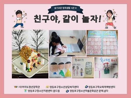 영등포구 청소년 상담복지센터(센터장 전윤경)는 5월 가정의 달을 맞아 4월부터 시작한 ’슬기로운 방콕 생활 시즌2‘와 ’소풍(소중한 가족과 풍성한 즐거움)프로그램을 5월까지 운영한다고 5월 5일 밝혔다.