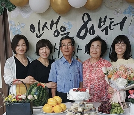 5월 20일 새벽 3시 30분, 이 시간에도 활동하고 계실 그리운 내 아버지의 모습이 떠오른다. 올해 팔순을 맞이한 우리 아버지는 작은 체구에 온몸에 근육들이 불끈불끈 솟았었지만, 올해 팔순을 맞이한 현재의 모습은 얼굴은 검고 근육도 모두 사라져 힘도 약해지셨다. 일 욕심이 많아 겁 없이 일을 늘리며 억척스럽게 일하시던 아버지는 이제 하루 일하고 하루 쉬어야 하는 할아버지가 되셨다. 아버지의 생신날은 모심을 때와 겹치지 않은 적이 없다. 비가 내리는 오늘도 모를 심느라 분주했을 아버지. 생일날 새벽부터 논에 나가 일하시고 들어오셔서 생신상이 차려질 때까지 최대한 인내심을 발휘해 기다렸다가 식사를 마치기가 무섭게 또다시 들로 나가신다. 농사일이 먼저인 아버지와 아버지의 생신상이 먼저인 자녀들의 웃지 못할 신경전이 펼쳐진다. 그런데 올해는 모가 안 자라서 생신 다음 날부터 모를 심게 되었다. 팔순 생신상을 만족스럽게 받으실 수 있었다. 올해의 모가 참으로 효자 중의 효자요! 큰일을 해냈다. 아버지는 절대 모심는 일과는 그 어떤 일과도 타협하지 않는 분이시다. 돌이켜 보면 아버지의 쉬는 모습보다는 일하시는 모습만 기억에 남는다. 먹고 살 만 하다면서도 사시사철 농사와 가축 기르기, 그리고 농사일이 없는 겨울에는 공사 현장에 나가 일을 하신다, 아버지는 일이 없다고 해서 쉬는 날이 없다. 새벽 4시쯤이면 어김없이 일어나서 디지털시계 불빛에 의지해 물 한잔 들이키신 후 이어폰을 귀에 꽂고 모자와 장갑을 챙겨서 마치 당신이 새벽인 양 어둠 속으로 조용히 나가신다. 어쩌다 집에 가면 아버지가 커다란 나무뿌리를 이용해 탁자 등 공예품을 완성해 놓으셨다가 딸에게 은연중에 자랑 스러워 하신다. 내가 봐도 잘 만드셨다. 그러고 보니 등산, 노래, 만들기 등을 좋아하는 나는 아버지를 참 많이 닮은 것 같다. 나도 작품까지는 아니지만, 손으로 하는 일들은 제법 해내고 좋아한다. 애니메이션을 배우고 이것을 천직으로 알고 일하던 내가 아픈 큰딸을 낳고 그 좋아하는 일을 놓는데 10년이 넘게 걸렸다. 나름대로 자신 있게 세상을 사는 나지만 아버지의 부지런함만은 닮지 못했다. 아버지에게 제일 받고 싶고 닮고 싶은 부지런함이지만! 안 되는 건 안 되는 거다. 내 핸드폰 속 아버지의 닉네임은 ‘사랑스러운 울 아빠’다. 팔순인 지금도 여전히 참을 수 없게 귀여우시다. 팔순 사진을 위해 열심히 화장한 아빠 볼에 느닷없이 뽀뽀하며 건강하게 함께해주셔서 감사하다는 인사를 드렸다. 아버지 늙어가고 있다는 사실이 서글프고 더 힘든 날도 오겠지만 걱정은 그때 하자고요. 앞으로 일은 좀 줄이시고 좋아하시는 등산과 취미활동 시간을 조금 더 늘리시고 오래도록 함께해요. 아버지 코로나19가 잠잠해 지면 제일 먼저 가족 여행부터 가요. 귀여운 우리 아버지와 함께라면 어디든 즐겁고 행복한 여행이 될 테니까요. 아버지! 존경합니다. 사랑합니다. 2021년 5월 20일 새벽 4시 30분 딸 공현숙 올림