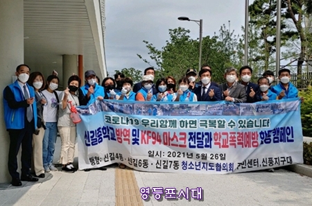 영등포구 신길 4동·6동·7동 청소년지도협의회가 공동으로 마스크를 전달하고 학교폭력 예방 캠페인을 벌였다.