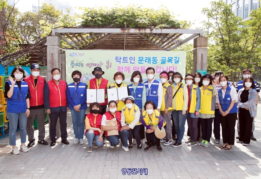 김미자 자원봉사연합회장 “쓰레기 무단 투기하지 않았으면” 문래동 자원봉사연합회(회장 김미자)는 6월 2일 오전 문래동주민센터 앞에서 영일시장 번영회(회장 서정훈), 문래동주민센터(동장 임선영)와 쾌적한 영일시장 조성을 위한 협약식을 맺고 영일시장 일대 골목 청소에 나섰다.