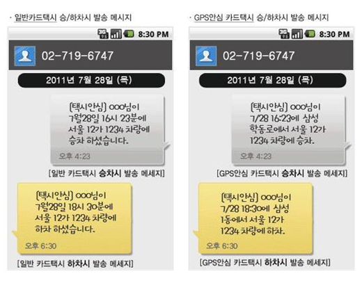 택시에 승차한 다음 출발하기 전에 요금을 결제할 카드를 결제기에 먼저 접촉해 두는 선승인 서비스를 이용하여 택시요금을 카드로 결제하면 여러 가지 혜택을 볼 수 있다. 승차한 택시에 GPS가 장착되어 있는 경우에는 PC나 스마트폰 등을 이용해 이동경로확인도 가능하다. 택시 안심귀가서비스를 이용하기 위해서는 사전에 택시안심 홈페이지(www.taxiansim.com)에 가입해 탑승알림 문자를 받을 보호자와 선승인 할 카드를 등록해야 한다. 승객이 택시에 탑승해 카드를 선승인하면 미리 등록해둔 보호자에게 승차시각, 차량번호, 승하차 위치정보가 문자로 전송된다.