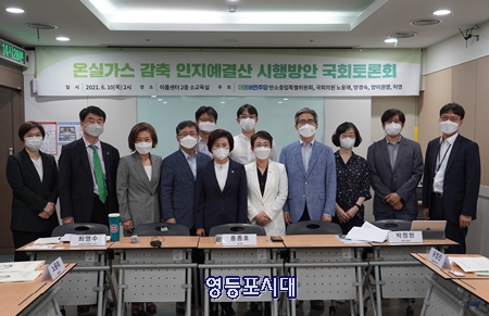 10일 더불어민주당 탄소 중립특위원회와 노웅래·양경숙·양이원영·허 영의원은 여의도 이룸센터에서 ‘온실가스감축인지 예·결산 시행방안 토론회를 개최하고 경제·환경정책 아우르는 온실가스감축인지 예·결산제 도입을 강조했다.
