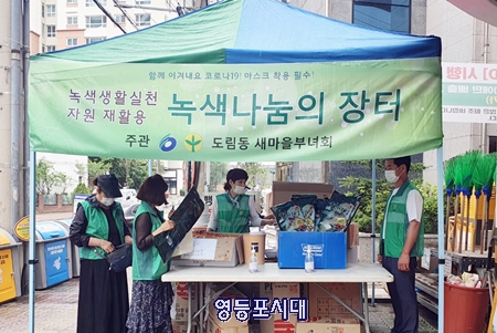 도림동 새마을부녀회는 6월 15일 오전 10시부터 오후 4시까지 도림동 주민센터 앞에서 녹색 생활 실천 자원 재활용 녹색 나눔의 장터를 개최했다.