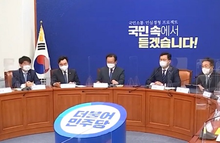 송영길 대표는 모두 발언에서 “희망회복자금 역시 최대 지원금 900만원을 받을 수 있는 소상공인은 전체의 0.3%에 불과하고 72% 소상공인은 300만원 이하의 지원금을 받을 것으로 예상된다”며 이같이 밝혔다. 송영길 대표는 이어 “이번 추경은 국민께서 코로나19 위기를 버텨낼 수 있도록 안전망 역할을 할 것이다”며 “열흘 넘게 1,000명 넘게 코로나19 신규확진자가 발생하고 특히 변이바이러스로 감염 경로 알 수 없는 비율이 31.6%를 기록하며 최대 위기에 직면해 있다”고 강조했다. 송영길 대표는 “670만 소상공인들의 생계 또한 한계에 이르렀다”고 우려를 나타내고 “지난주 산업통상자원 중소벤처기업부에서 여•야가 이견 없이 소상공인들은 방역 수준과 연 매출 규모에 따라 최대 3,000만원까지 지급받을 수 있도록 했다”라고 밝혔다. 송영길 대표는 “전 국민 재난지원금도 결단이 필요한 때다. 현재 재난지원금 지급방식 대로한다면 약 1,000만명에 달하는 국민이 제외된다”라며 “소득수준 분리에 따른 행정비용과 공정성 문제 제기 등 기회비용 충분히 따져야 한다. 재정 당국의 고충 충분히 이해하고 공감합니다. 여러 가지 지혜를 찾아보겠다”고 밝혔다. 김부겸 국무총리는 “정부는 지금 코로나19 상황을 방역의 마지막 고비로 생각하고 ▲전 국민 합심 방역 ▲백신 접종 가속화 ▲소상공인 피해지역 확대에 전 방위적으로 대응하고 있다”고 밝혔다. 김부겸 국무총리는 “정부 이번 추경예산안을 국회 제출한 뒤에 여야 할 것 없이 소상공인과 자영업의 지원을 더욱 강화해야 한다는 국회의 의견을 존중하여 당정은 소상공인 피해지원 방안 논의해 주기를 바란다”며 “특히 방역상황 변화와 소상공인 피해를 고려해 적극적으로 희망 회복자금 증액 방안을 모색할 필요가 있다”고 강조했다. 이날 열린 고위 당정협의회에 참석한 당 관계자는 송영길 대표, 윤호중 원내대표, 윤관석 사무총장, 박완주 정책위의장, 박홍근 예결위원장, 맹성규 예결위 간사, 이학영 산자위 위원장, 고용진 수석대변인, 정부 관계자는 김부겸 국무총리, 홍남기 경제부총리, 권칠승 중기부장관, 구윤철 국무조정실장, 청와대 관계자는 이호승 정책실장, 이철희 정무수석, 안일환 경제수석, 임서정 일자리수석 등이 참석했다.