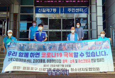 신길7동 청소년지도협의회의 방역과 소독 봉사, 그리고 비말 마스크 전달 등 코로나19 확산 방지를 위한 봉사활동이 이어지고 있다.