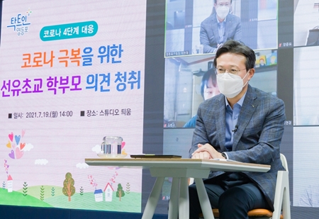 채현일 영등포구청장은 19일 오후 스튜디오 틔움에서 온라인으로 선유 초등학교 학부모들과
