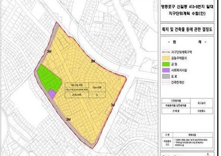 서울시는 2021년 7월 28일 돈의문 박물관 내 도시건축센터에서 제13차 도시·건축공동위원회를 개최하여 신길동 413-8번지 일대(75,486㎡) 지구단위계획구역 지정 및 계획 결정(안)을 보류했다.