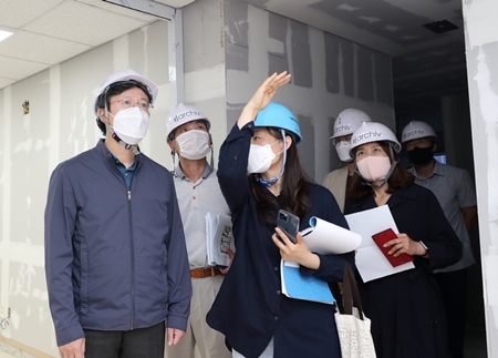 채현일 영등포구청장은 9일 오후 양평 2동에 있는 창의예술교육센터 공사 현장을 방문해 공사 진행 현황을 꼼꼼히 점검하고 안전한 마무리를 당부했다.