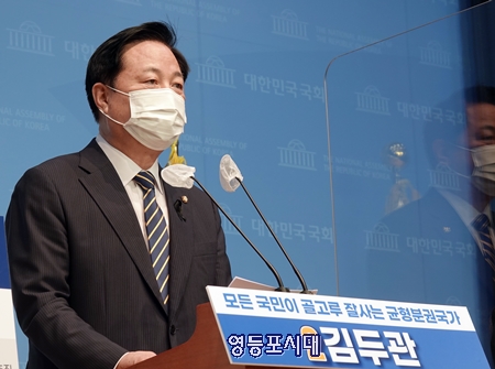 김두관 민주당 20대 대선 경선 후보(아래 후보)는 9월 2일 국회 소통관에서 기자회견을 열고 이같이 약속했다. 김두관 후보는 “정책은 구체적이어야 하고, 실현 가능해야 하며, 반드시 성과를 내야 한다”고 강조하고 “수도권과 비수도권이 하나 되는 새로운 균형 분권 국가, 대한민국의 구체적 비전으로 고민한 후보는 저 김두관이라고 확신한다”며 “정책은 구체적이어야 하고, 실현 가능해야 하며, 반드시 성과를 내야 한다”고 거듭 강조했다. 김두관 후보는 이날 정부의 국가적 균형 분권 구상을 총괄적으로 소개하고, 권역별 내용을 구체적으로 설명했다. 김두관 후보의 이날 약속은 ▲국토부와 국가균형발전위원회를 통합하여 국토균형분권부를 신설하고, 신설 부처의 장관이 ‘국토균형부총리’ 담당 ▲5개 메가시티 지역(Mega City Region)과 2개 특별도로 각 권역이 조건과 규모에 맞는 맞춤형 초광역 전략을 유연하게 선택할 수 있도록 하고, 중앙정부가 이를 적극적으로 지원 ▲디지털 뉴딜, 그린뉴딜, 휴먼 뉴딜 등 지역 주도 뉴딜을 강화 ▲국세 지방세 비율을 6:4로 전환하여 실질적 재정 분권 ▲지방소멸, 지역 위기에 대응하는 특단의 정책 강력 추진 ▲지역발전투자협약을 전면화해 지방 살리기 등이다. 김두관 후보는 “균형 분권 정책은 누구나 말한다”며 “그러나 진정성을 가지고 일관되게 균형 분권 비전을 제시한 후보는 김두관 뿐이다”고 강조하며 지지를 호소했다.