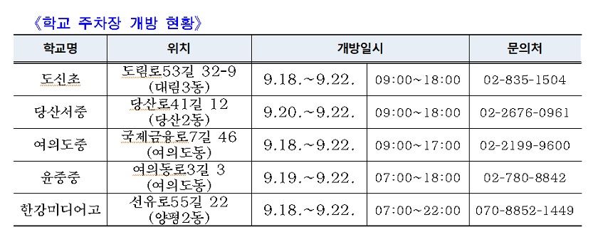 또 ▲9월 15일부터 23일까지 9일간 주요 역사, 대형 상가 등 다중집합장소를 중심으로 불법 주‧정차 특별단속 시행 ▲지역 내 초‧중‧고등학교 5개소와 공영주차장(노외 3개소, 노상 31개소)을 개방해 주차난에 대비한다.