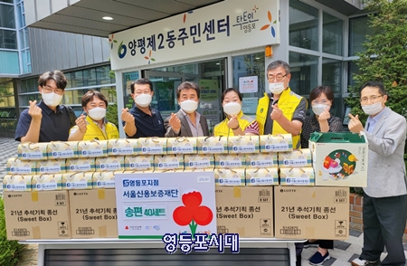 9월 16일 오후 서울신용보증재단(영등포지점장 이선종)은 추석 명절을 맞아 양평2동 주민센터에 송편 40세트를 기부했다. 서울신용보증재단에서 이날 기부한 송편은 40세트는 양평2동 이상헌 동장, 서울신용보증재단 관계자, 임헌호 주민자치회장이 지역의 어려운 이웃과 소외계층에 전달했다. 한편 양평2동 주민자치회 선유자연환경분과는 이에 앞서 14일, 2021년 동 단위 계획형 시민참여예산사업인 “자연이랑 함께하는 선유의 거리”사업을 진행했다, 이날 선유자연환경분과가 양화대교 남단 사거리에서 선유도역까지 양방향으로 설치한 꽃 걸이 화분은 주변 상가와 업무협약을 맺어 관리할 예정이다.
