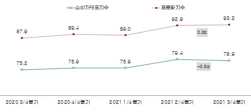 ‘소비자태도지수’ 전 분기 대비 0.3p 소폭 상승