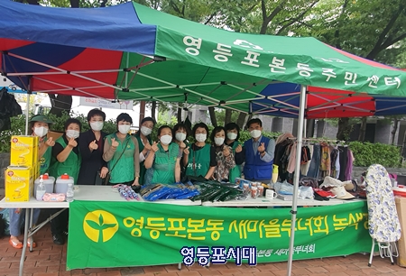 영등포본동 새마을부녀회 신현이 회장과 회원 10여 명은 9월 27일 영등포공원 입구에서 불우이웃 돕기 기금모금을 위한 녹색 장터를 열고 물품 판매에 나섰다.