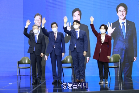 10일 오후 민주당 제20대 대통령 후보로 이재명 후보가 선출됐다. 이재명 후보는 누적 득표율 50.29%로 아슬아슬하게 과반 득표에 성공하면서 결선투표 없이 본선으로 직행했다. 민주당은 10월 10일 오후 서울 올림픽공원 SK핸드볼 경기장에서 열린 마지막 순회경선 일정인 ‘서울지역 경선 및 3차 국민선거인단 투표’ 결과 이재명 후보가 누적 과반 득표율로 1위를 차지해 민주당 대선 후보로 확정됐다고 밝혔다. 이재명 후보는 서울지역 대의원·권리당원 온라인·자동응답(ARS) 투표 집계 결과, 유효투표수 8만8893표 중 4만5737표(득표율 51.45%)를 얻어 3만2445표(36.50%)를 얻은 이낙연 후보를14.95%포인트 앞서 1위를 차지했다. 추미애 후보는 9.01%, 박용진 후보는 1.55%를 득표했다. 이낙연 후보는 3차 국민선거인단(국민+일반당원) 투표에 15만5220표(62.37%)를 얻어 7만441표(28.30%)를 얻은 이재명 후보를 크게 앞섰지만, 이재명 후보의 과반득표수를 저지하지 못해 결선투표가 좌절됐다. 최종 누적 득표율은 이재명 후보 50.29%, 이낙연 후보 39.14%, 추미애 후보 9.01%, 박용진 후보 1.55%의 지지를 얻었다. 이재명 후보는 3개월여 동안 펼쳐진 순회 경선에서 광주 전남을 제외하고 모두 과반수 득표로 제20대 대통령선거 민주당 후보로 확정됐다. 이재명 후보는 이날 “위대한 집단지성체인 국민의 공복으로서 주권자를 충실히 따르며 끈질기게 개혁의 길을 가겠다”라며 자신과 함께해달라고 호소했다.