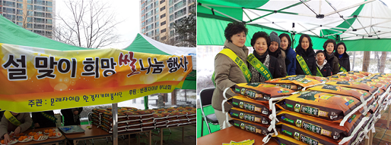 문래동 자이아파트 부녀회/환경지키미봉사단 2013 설맞이 ‘사랑의 쌀’ 전달 문래동 자이아파트 부녀회와 환경지키미봉사단은 6일(화) 오후 아파트단지 내에서 민족 대명절인 설맞이 ‘희망쌀’ 전달식을 가졌다.