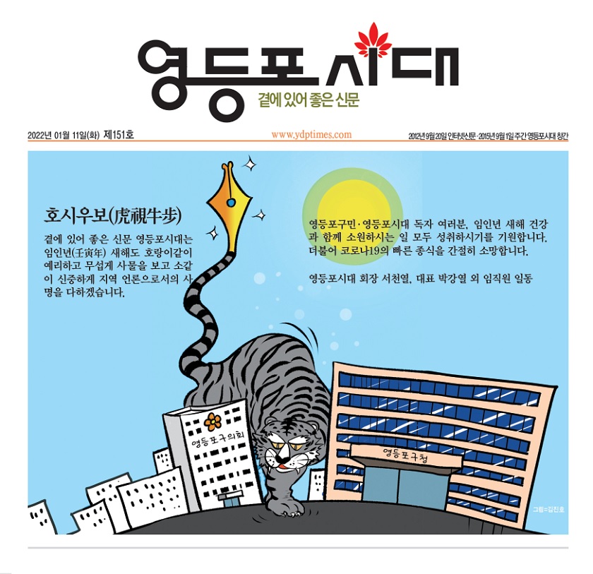 곁에 있어 좋은 신문 영등포시대는 임인년(壬寅年) 새해도 호랑이같이 예리하고 무섭게 사물을 보고 소같이 신중하게 지역 언론으로서의 사명을 다하겠습니다.