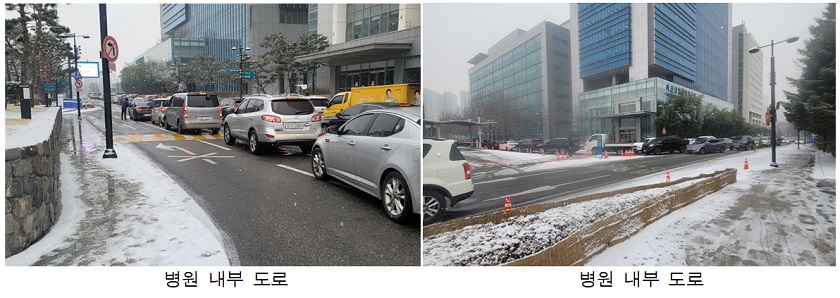 MBC 뉴스데스크 19일 저녁 “모 병원과 연결된 올림픽대로가 눈길로 정체가 심해지면서 차량 수십 대가 병원 주차장에 4시간 다량 갇혀있었다”라며 “서울에서 20건의 눈길 사고가 발생했는데 다행히도 인명피해는 없었다”라고 보도했다.
