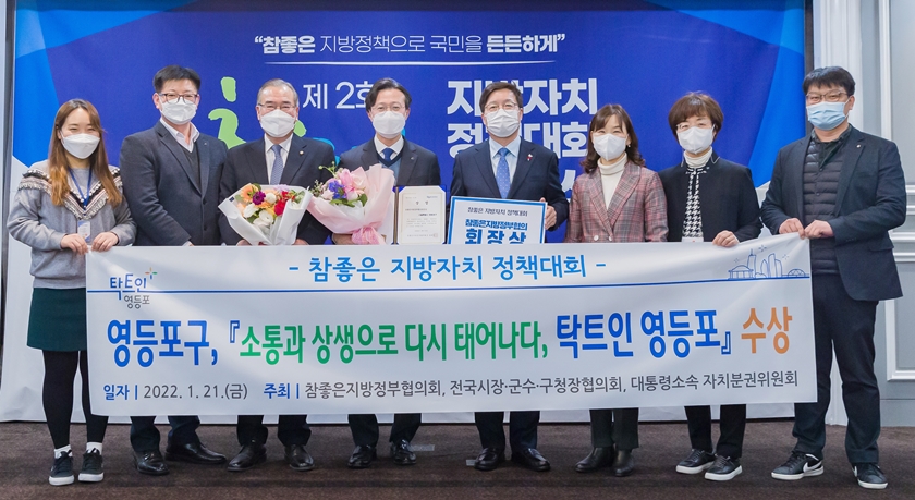 영등포구는 1월 21일 여의도 켄싱턴호텔에서 열린 ‘참 좋은 지방자치 정책대회’ 시상식에서 ‘소통과 상생으로 다시 태어나다, 탁 트인 영등포’ 조성 정책 사례로 참 좋은 지방정부 협의회장상을 받았다고 밝혔다.