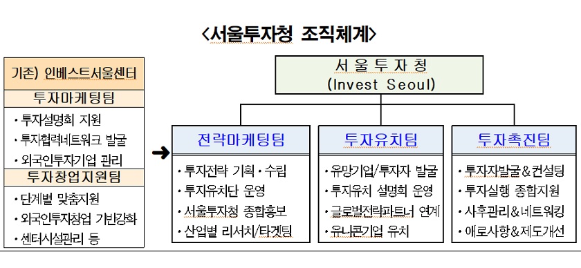 해외기업의 성공적인 서울 안착 올인원 패키지 지원 서울시가 해외 유수 기업과 투자자본을 서울시로 집중 유치하는 역할을 수행할 ‘서울투자청(Invest Seoul)’을 7일 정식 출범한다.