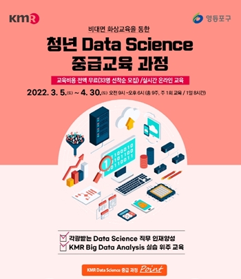 영등포구가 최근 산업 구조의 변화로 주목받는 ‘청년 데이터 사이언스(Data Science) 빅데이터 분석 중급과정’을 3월 5일부터 4월 30일까지 매주 토요일 8시간씩 총 9회 운영한다고 17일 오전 밝혔다.
