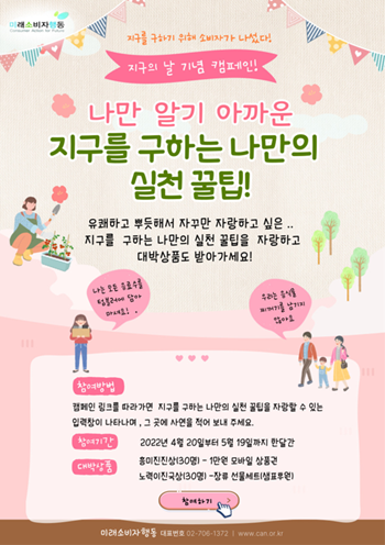 미래소비자행동은 4월 22일 지구의 날 기념 캠페인 ‘나만의 실천 꿀팁’을 진행한다.