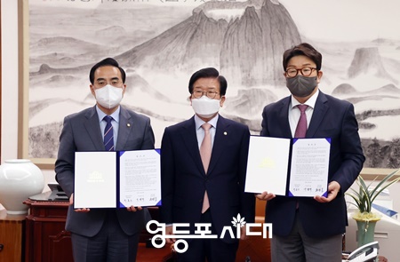 4월 22일 박병석 국회의장과 여·야 원내대표는 국회에서 만나 박병석 의장이 제시한 중재안에 사인했다. 이로써 ‘검수완박’ 법안으로 인해 생긴 여야 전선은 일단 해소되었다. 그러나 김오수 검찰총장이 또 사표를 제출하는 등 검사들의 반발이 이어지고 있다. 박병석 의장은 이날 여·야 합의를 끌어낸 후 “이 합의문에 따른 법 개정 물론 합의 정신 따라 충실히 속도감 있게 처리해줄 것으로 믿는다”라고 강조하고 “이제 더 이상 검찰개혁으로 소모적인 논쟁을 중단하고 앞으로는 민생과 국민을 위한 국회가 돼서 다시 신뢰받는 국회가 되기를 진심으로 희망한다”라며 두 원내대표에게 감사의 인사를 전했다. 박홍근 민주당 원내대표는 “저희가 그동안 검찰개혁, 즉 수사권 기소권 분리를 통한 검찰 기능 정상화를 얘기한 것은 결코 정치적 유불리의 문제가 아니다”라며 “국민의 기본권과 인권을 보호하고 권력기관의 사법행정 체계가 더 선진화되기를 바라는 충심에서 했다”라고 밝혔다. 박 원내대표는 이어 “수사권 기소권 분리라는 대원칙이 이번에 수용되고 4월 중 합의할 수 있었고, 한국형 FBI 설치와 같은 국가의 반부패 수사의 역량을 고도화, 전문화할 수 있다는 점에서 높이 평가한다”라며 “국민이 편안한 삶 누릴 수 있고 피해 없도록 꼼꼼한 입법적 보완 조치를 통해 뒷받침하겠다”라고 약속했다. 권성동 국민의힘 원내대표는 “민주당이 제출한 소위 ‘검찰 수사권 완전 박탈’ 법안에 대해 국민적 논란 있었고 많은 반대 여론 있었다”라고 지적하고 “그로 인해서 우리 국회가 극한적인 대립상태로 치달았다. 그러한 중간에 박병석 의장님의 탁월한 리더십과 혜안으로 여·야간에 원만한 합의를 끌어낼 수 있었다”라고 합의의 공을 박병석 의장에게 돌렸다. 권 원내대표는 이어 “결국 여든 야든 정답은 국민의 이익을 위해 존재하는 것이고, 국민의 이익을 위해 일해야 한다고 생각한다”라며 “그동안 국회가 국민에게 좋지 못한 모습 참 많이 보였다. 앞으로도 민생 문제에 있어서는 여·야간에 머리를 맞대고, 깊은 숙고와 토론을 통해 멋진 정치, 바른 정치로 국민께 희망을 드리도록 최선을 다하겠다”라고 약속했다. 이날 박병석 국회의장이 중재안으로 제시하고 양당 원내대표가 합의 후 사인한 8개 항은 ▲검찰의 직접 수사권과 기소권을 분리하는 방향으로 하되, 한시적으로 유지될 직접 수사의 경우에도 수사와 기소를 분리하고 ▲검찰의 6대 범죄 가운데 4개 항을 삭제하되 부패, 경제범죄에 대한 수사 권한은 존속 ▲검찰의 직접 수사 총량을 줄이기 위해 현재 6개 특수부를 3개로 감축하고 ▲송치사건에 대하여는 범죄의 단일성과 동일성을 벗어나는 수사 금지 등 검사 수사 일정 수준으로 제한 ▲위원장을 민주당으로 하는 사법개혁 특위 13인으로 구성(가칭 ‘중대범죄수사청’, 한국형 FBI 설치 등을 특위에서 논의, 중대범죄수사청이 출범하면 검찰의 직접 수사권 폐지 ▲공수처 공무원이 범한 범죄는 검찰의 직무에 포함 ▲검찰개혁법안 이번 임시국회 4월 중에 처리 ▲이와 관련된 검찰청법 개정안과 형사소송법 개정안은 공포된 날로부터 4개월 후 시행 등이다. 박병석 의장은 양당 원내대표가 사인을 마친 후 “21대 국회가 협치 국회, 의회정치를 부활시킨 협력의 국회가 될 수 있도록 최선을 다해 달라”라고 당부했다.