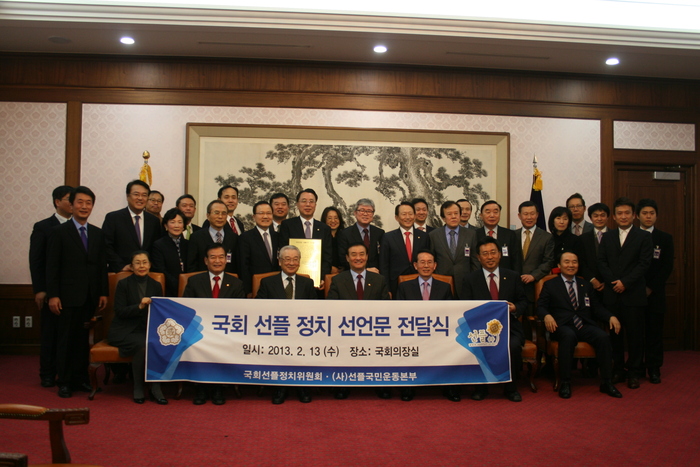 이날 선플정치선언문 전달식에는 강창희 국회의장과 민병철 이사장, 국회선플정치위원회 공동위원장인 새누리당 서상기 의원과 민주통합당 김춘진 의원, 새누리당 김회선 의원을 비롯한 여야 의원들과 선플국민운동본부 공동대표 이순재, 서경석씨 등 선플운동 관계자들이 참여한 가운데 선플의 뜻깊은 의미를 더했다.