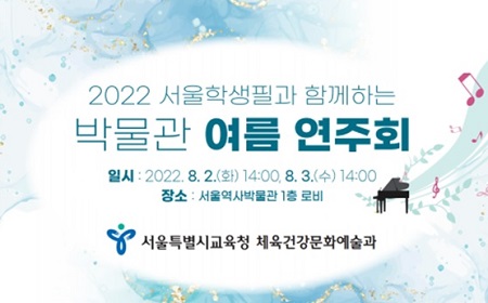 서울시교육청, 서울 학생 필하모닉오케스트라 박물관 여름 연주회 개최 2022 서울 학생 필하모닉오케스트라 박물관 여름 연주회가 열린다. 서울특별시교육청은 오는 8월 2일, 8월 3일 양일간 오후 2시부터 3시까지 서울역사박물관 1층 로비에서 ‘2022 서울 학생 필하모닉오케스트라 박물관 여름 연주회’를 개최한다. 서울 학생 필하모닉오케스트라는 2016년 서울시교육청과 한국 생활예술음악인협회, 세종문화회관의 협력으로 창단되어 ‘예술과 함께 생활하고, 예술과 함께 성장’하는 서울시교육청의 대표 학생 오케스트라로 성장 발전해 왔다. 이번 연주회는 서울 초·중·고 학생 77명으로 구성된 서울 학생 필하모닉오케스트라 단원들이 2020년부터 지휘를 맡아온 진솔 지휘자와 한여름의 클래식 향연을 위한 아름다운 선율로 무대를 준비했다. 특히, 이번 연주회는 시민들에게 일상속에서 예술을 즐기는 편안함을 제공하고자 서울 역사박물관 로비에서 개최하여 시민들에게 한 걸음 더 가까이 갈 수 있도록 기획하였다. 이번 박물관 여름 연주회에서는 서울 학생 필하모닉오케스트라 단원이 직접 사회를 맡아 진행하며, 현악 합주곡인 ‘아이네클라이네 나흐트무지크’, ‘위풍당당 행진곡’과 ‘캐리비안의 해적’, 그리고 ‘카르멘 모음곡’을 연주할 계획이다. 또한, 관객의 참여를 유도하기 위해 연주곡과 관련한 퀴즈 타임을 마련하여 무더위로 지친 관객들이 잠시나마 음악으로 힐링할 수 있는 기회를 제공하고자 한다. 조희연 서울시 교육감은 “서울 학생 필하모닉오케스트라의 박물관 여름 연주회가 우리 학생, 교직원, 학부모뿐 아니라 박물관을 찾는 모든 이에게 감동과 희망을 전하는 선물이 되길 기대한다”며, “우리 학생들이 백만 개의 교실에서 친구들과 함께 음악으로 소통하며 예술을 배우고 즐기며, 더 나아가 미래에 대한 꿈을 키울 수 있기를 바란다”고 밝혔다.