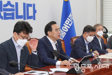 박홍근 민주당 원내(사진, 왼쪽에서 두 번째)대표는 국정 전반에서 난맥상을 드러내고 있는 윤석열 정부를 향해 “이런 안일한 인식으로는 국정 정상화를 기대하기 어렵다”라고 직격탄을 날렸다.