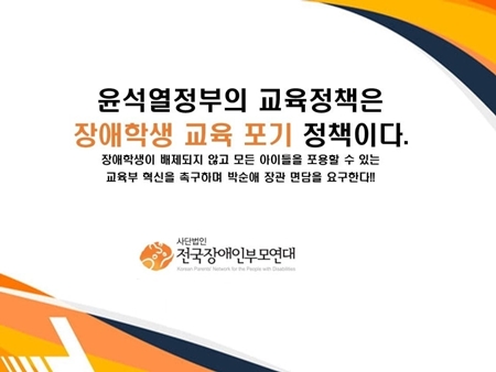 전국장애인부모연대는 “윤석열 정부의 교육정책에 장애 학생은 배제되어 있다”라고 지적하고 “이것은 명백히 장애 학생 교육 포기 계획이다”라고 강하게 비판했다.