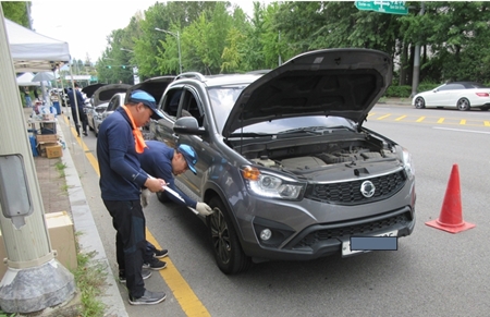 안전한 추석 귀성길 운전을 위해 서울시 자동차 전문 정비사업 조합 영등포구지회 회원 60여 명으로 구성된 베테랑 점검반이 장거리 주행시 차량 안전과 직결되는 부분을 집중적으로 점검한다.