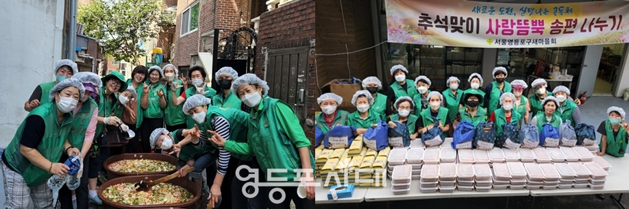 영등포구 새마을 부녀회장단, “추석 맞이 사랑 듬뿍 송편 나누기” 행사 개최 추석 명절이 일주일 앞으로 다가온 가운데 새로운 도전, 살맛 나는 공동체 ‘영등포구 새마을 부녀회’가 홀몸(혼자 사는) 어르신들과 저소득층 가정을 위해 한마음으로 뭉쳤다.