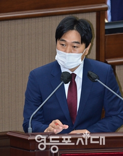 반면 행정자치위원회 민주당 소속 박유진 시의원(왼쪽 사진)은 15일 시정질문에 나서 7월 4일, 서울시의회 국민의힘 소속 시의원 전원이 제1호로 발의한 ‘TBS 폐지조례 안’에 대해 “ 사실상 예산 지원 중단을 의미다”며 “TBS 폐지조례는 자체로 이미 위법한 조례로 400명 노동자 생존과 32년 공영방송 가치를 짓밟는 행위다”고 강조했다.